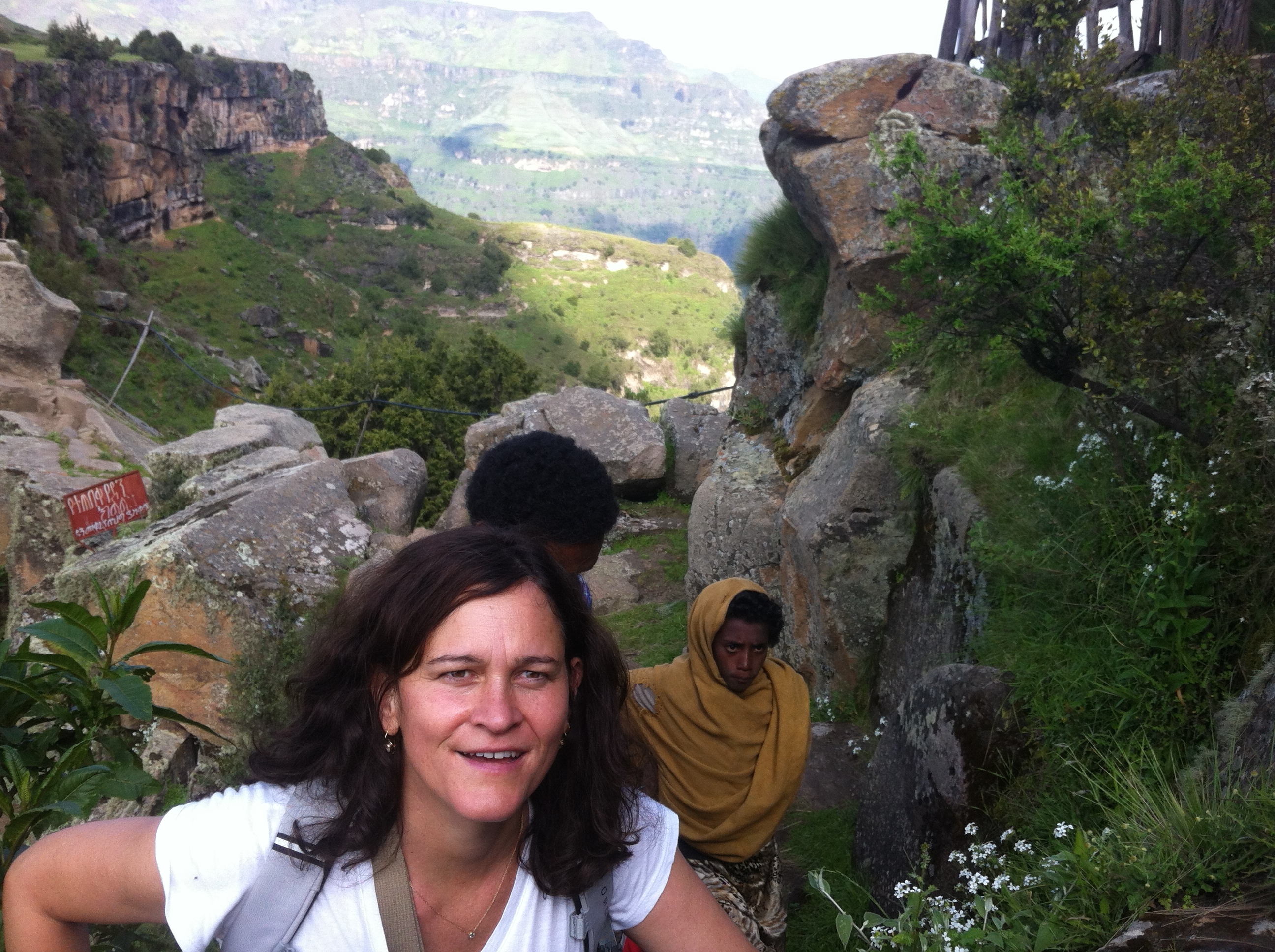 A small entourage accompanied us: the owner of the mule, his grandson who looked to be somewhere between my kids’ ages, our guide, Workeye, who carried two of our daypacks while Nico and I took turns carrying another one, and a pair village men who balanced plastic crates of beer and soda to resupply the Hudad on their shoulders. The grandson insisted on carrying Roman’s daypack, which was stuffed with everything he’d need for the next couple of nights, and weighed nearly ten pounds.