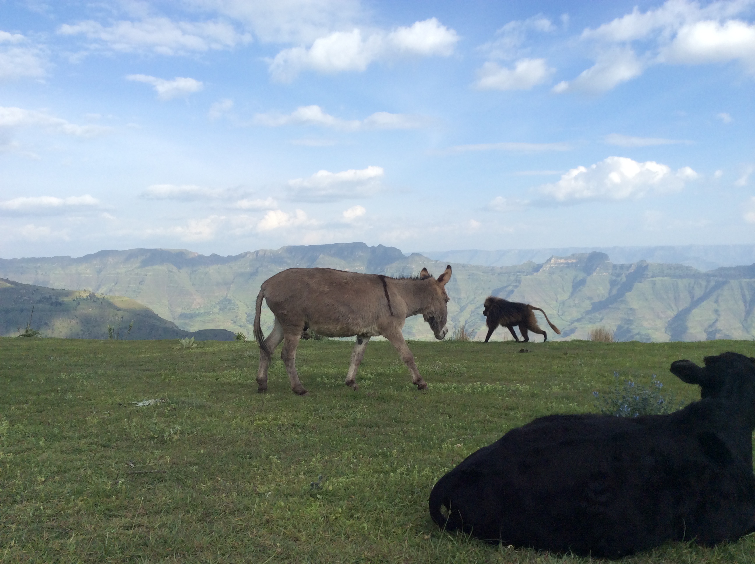 Entoto Hill sits up a windy mountainous road about 1000 meters above Addis Ababa, making it 3200 meters high and a nice respite from the bustle and exhaust fumes of the city down below. Hermias, our driver, told us that Haile Gebreselassie, the Ethiopian marathon star, trained on this hill. During the The drive we passed a half a dozen women carrying huge bundles of sticks on their backs they’d collected from the forest dotting the mountainside. Why is it always women, the kids wanted to know, and our driver Hermias simply said that it always had been.