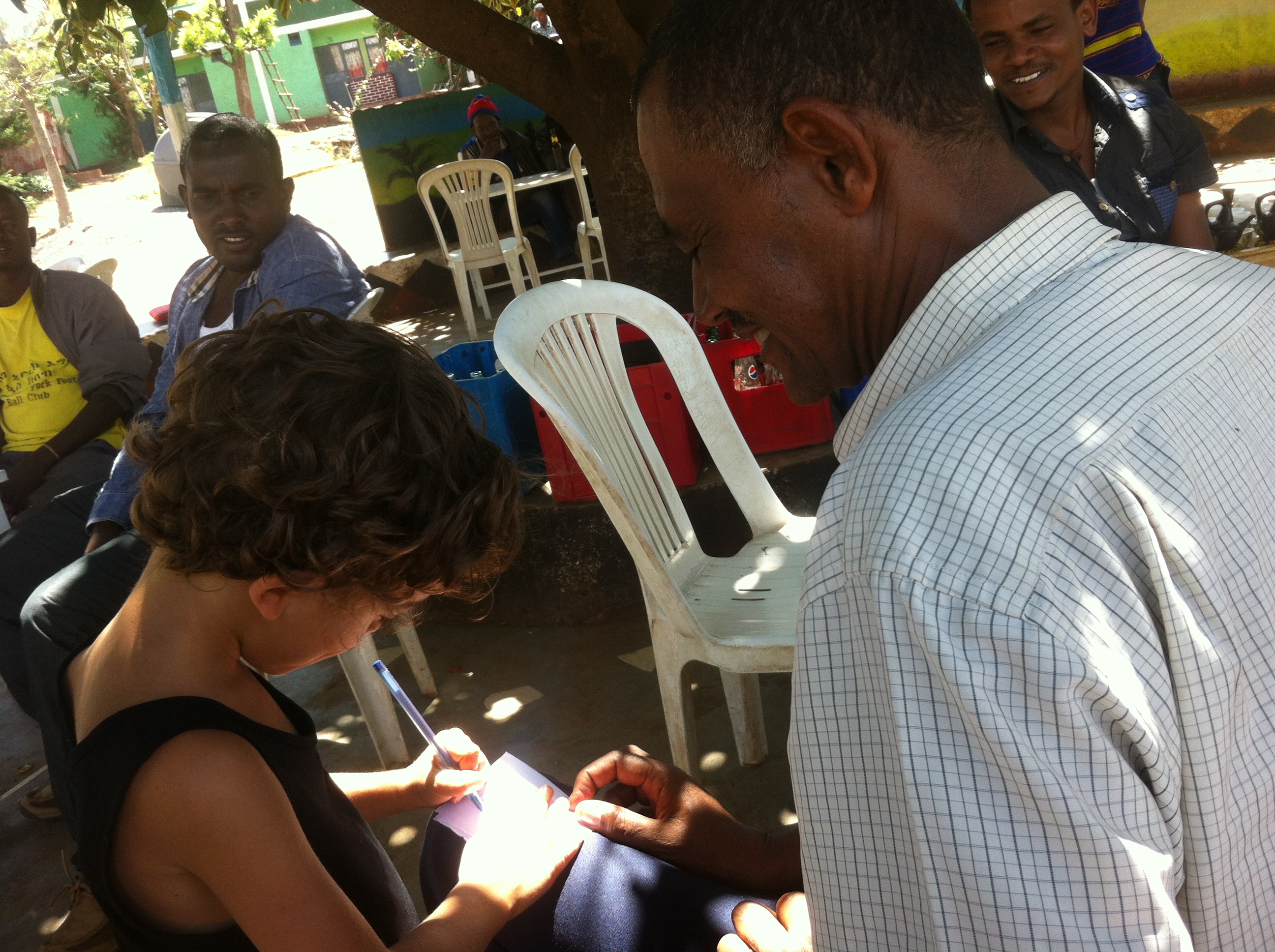 When I asked Shigo if a girl had to comply, he insisted that they didn’t, but he didn’t know of any who had refused. A young girl could never leave her village and head alone to town without making herself very vulnerable (especially since rape victims are outcasts in Ethiopia), so they couldn’t choose another life. The Moral Relativism argument, which we heard plenty of, would have me refrain from judgment out of respect for their culture, but I couldn’t stop looking for signs of the women’s discontent or feelings of oppression. There was none that I could see. Their expressions revealed very little. I did have a small moment of connection with one of the mothers when we were watching the kids play soccer. Roman went to kick the ball hard and missed, knocking himself off his feet in the process. The mother and I both started to laugh. Kids are funny everywhere.